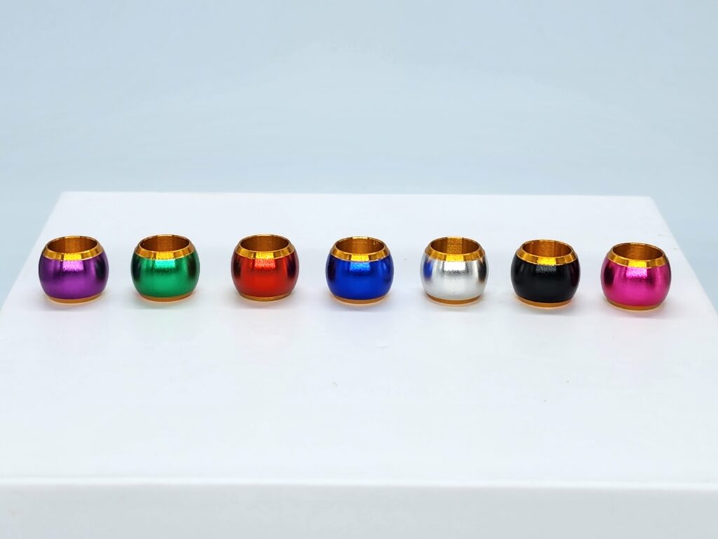 Estos anillos tienen un diametro interior de 8mm y una altura de 10mm. El material de estos anillos es Aluminio Galvanizado. Tenemos 6 modelo de colores de 2 tonos: